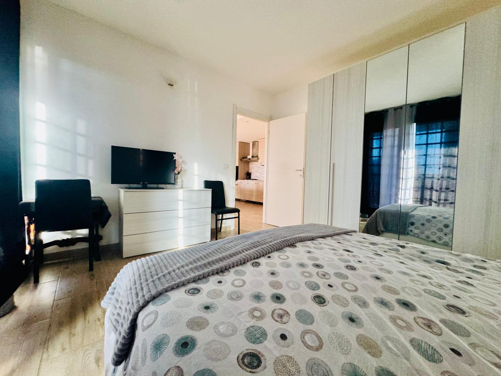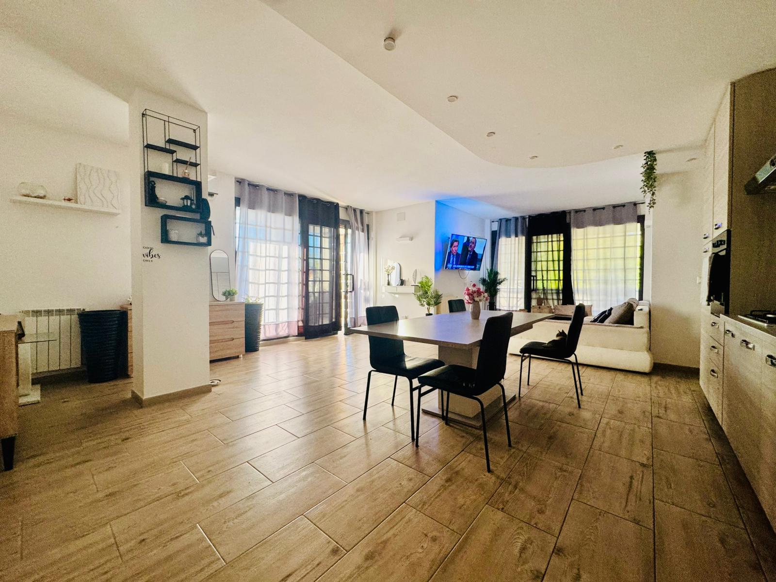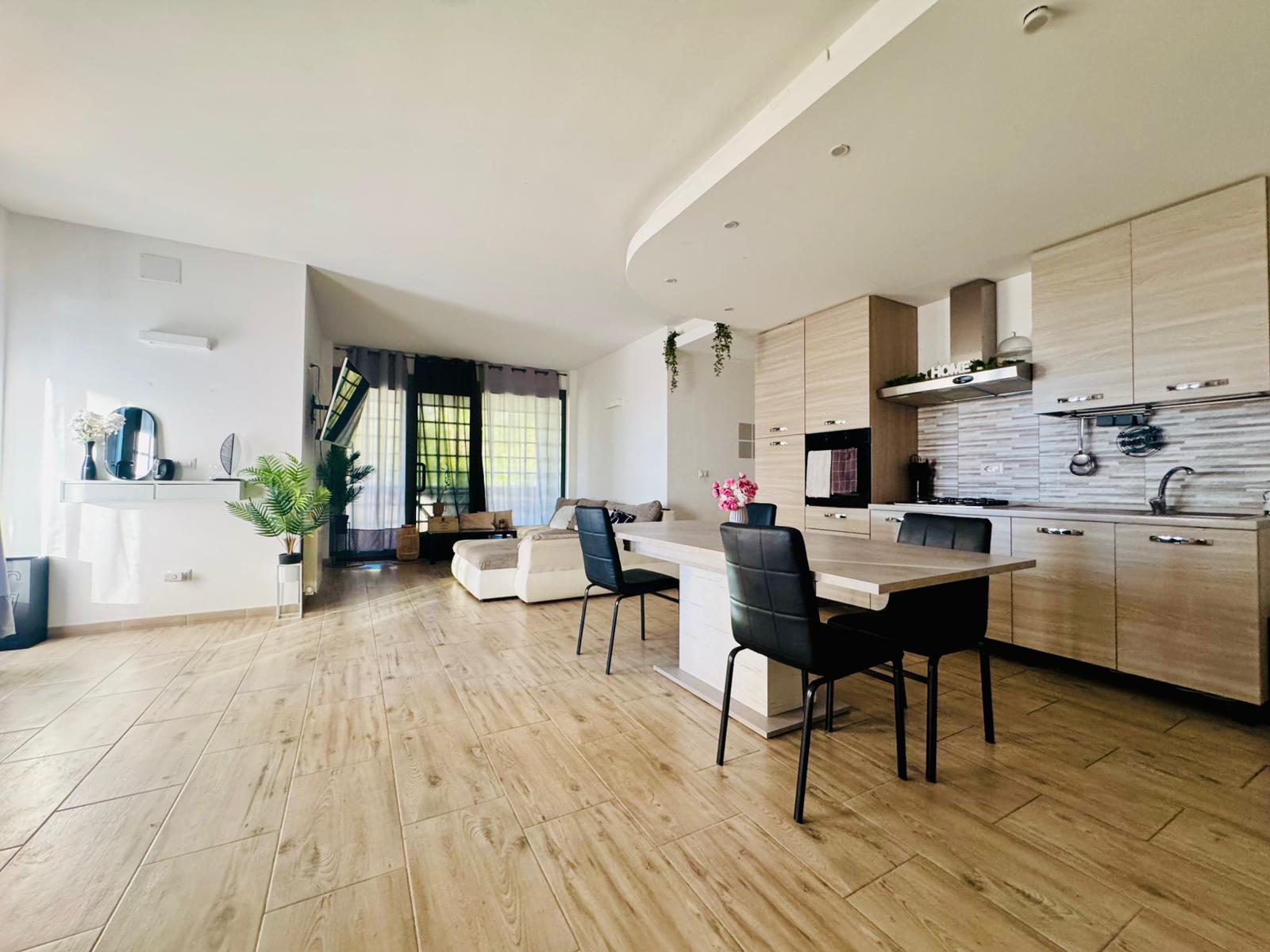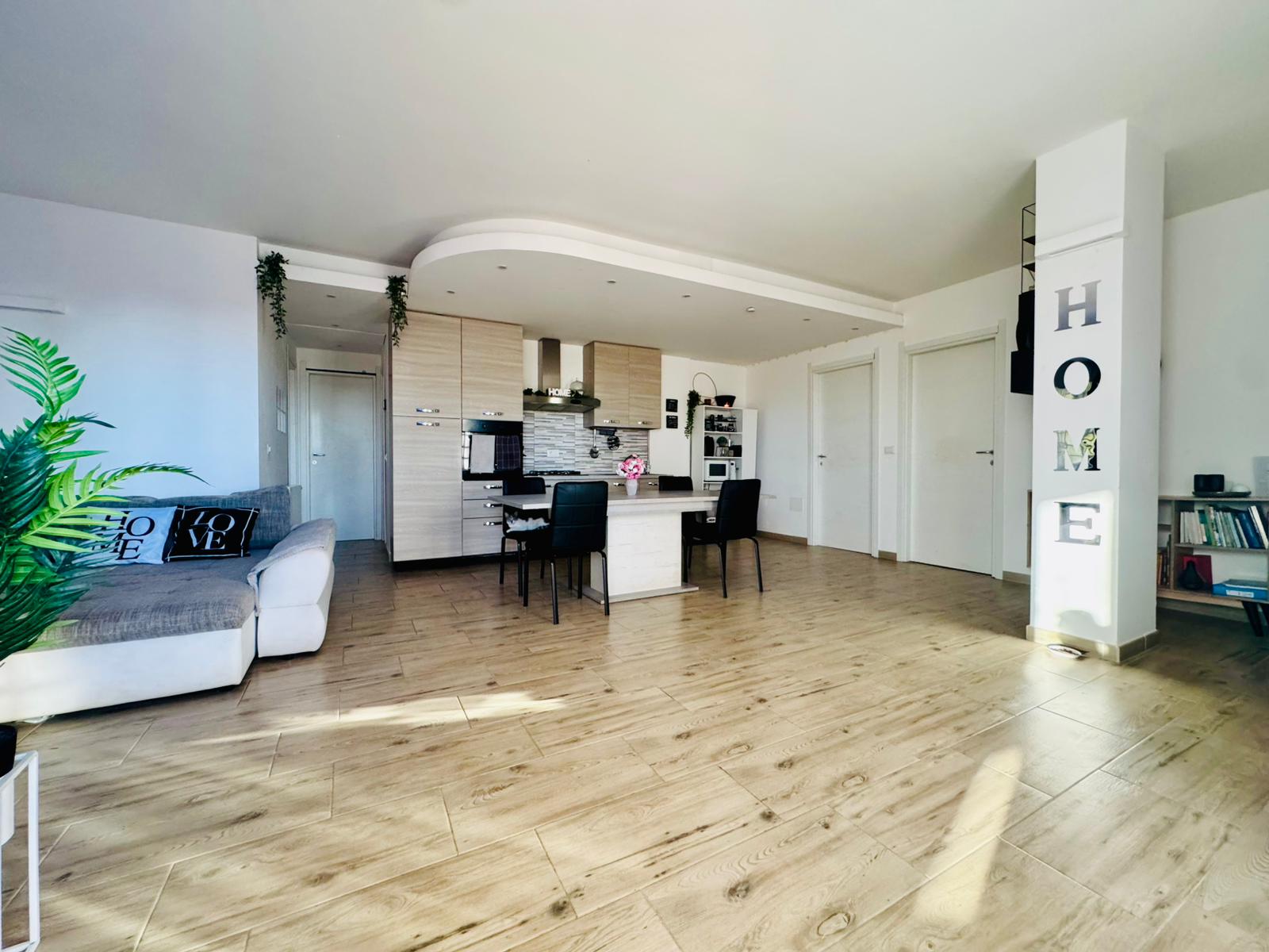 L’ampia sala con cucina a vista è ideale per trascorrere momenti conviviali, mentre le due camere da letto matrimoniali offrono spazio e tranquillità. Il bagno è funzionale e ben distribuito, e non mancano una lavanderia e un ripostiglio trasformato in cabina armadio per ottimizzare gli spazi.