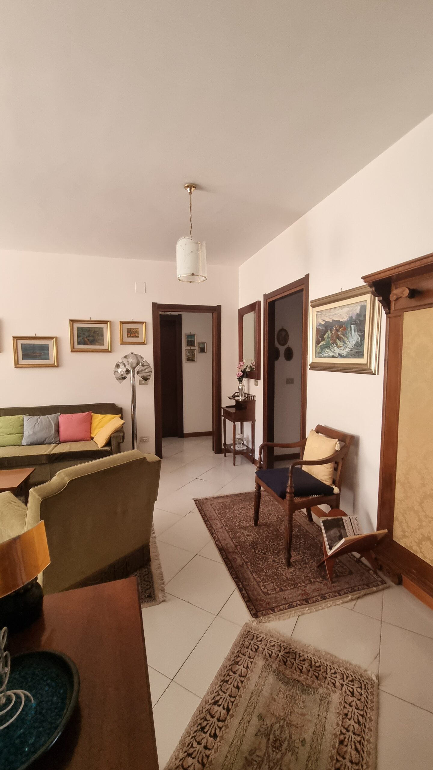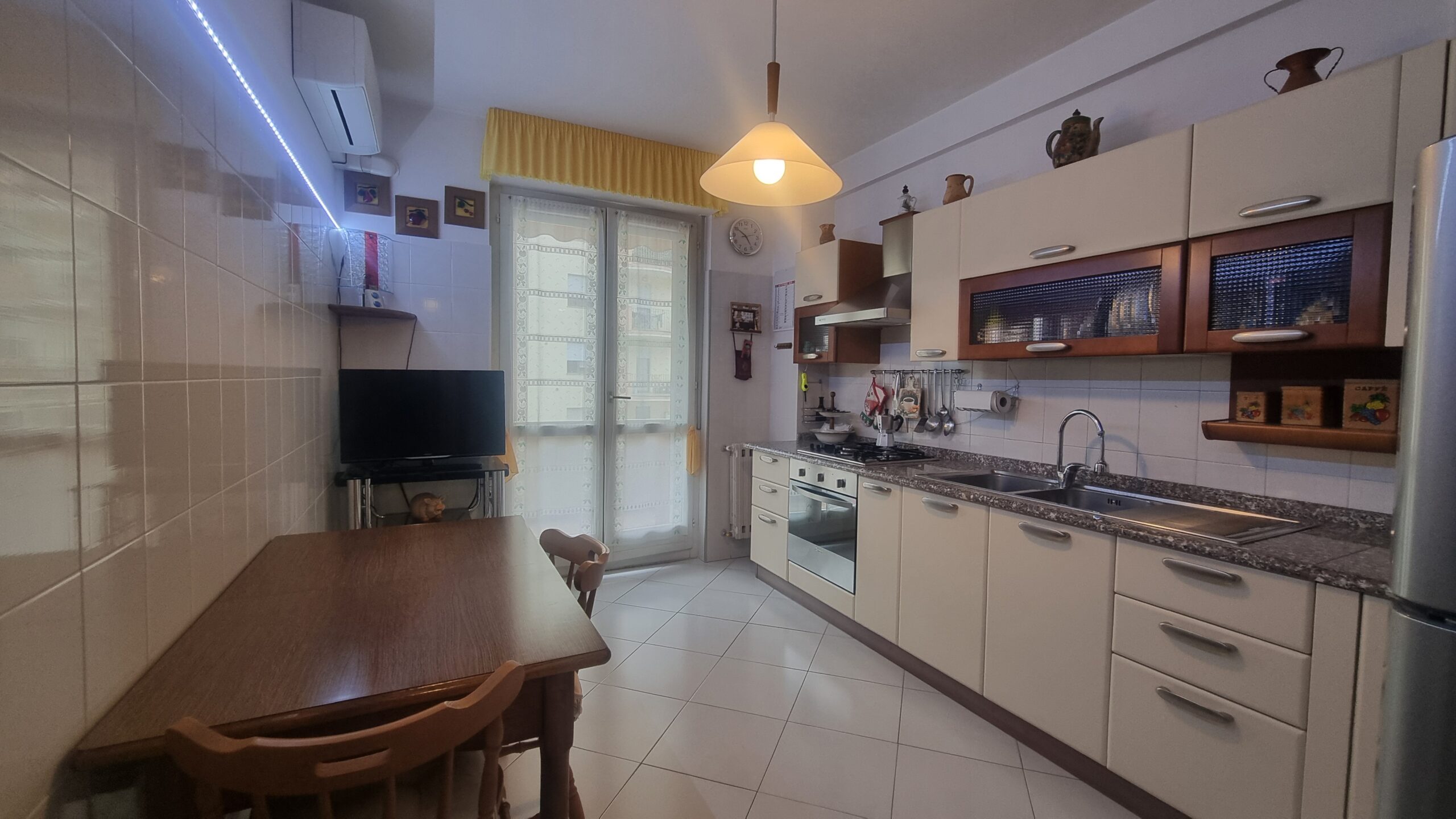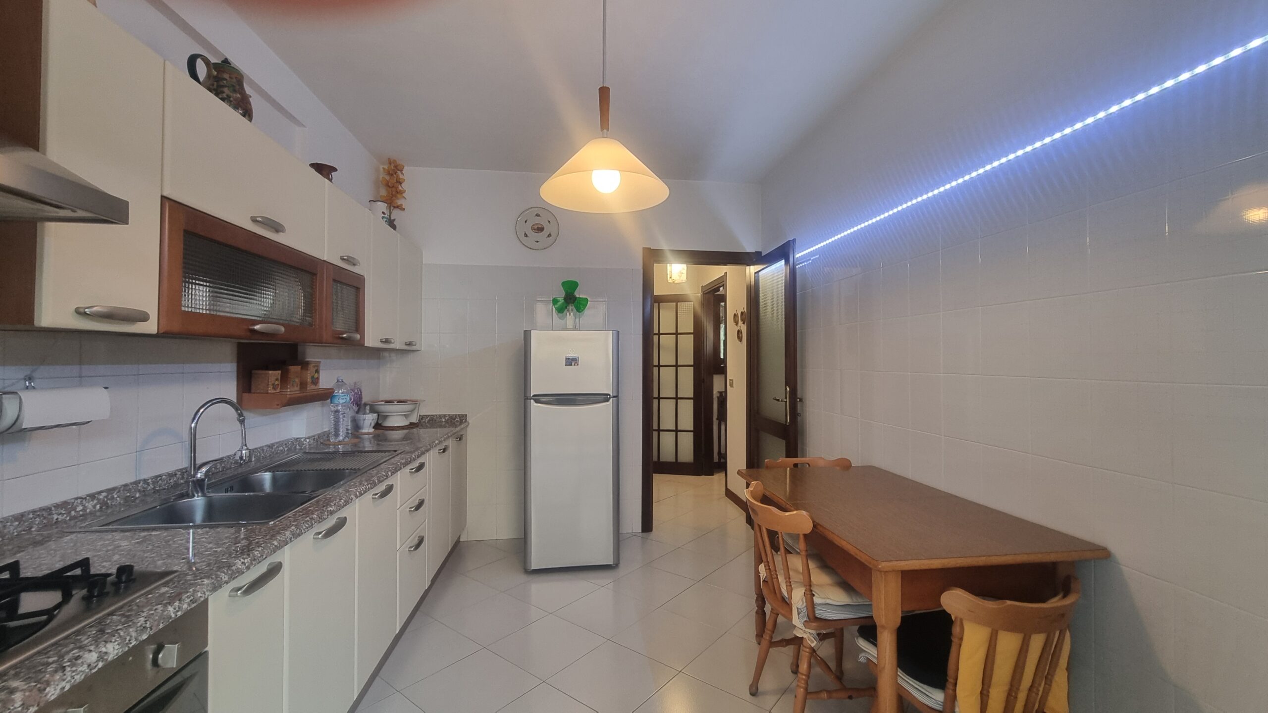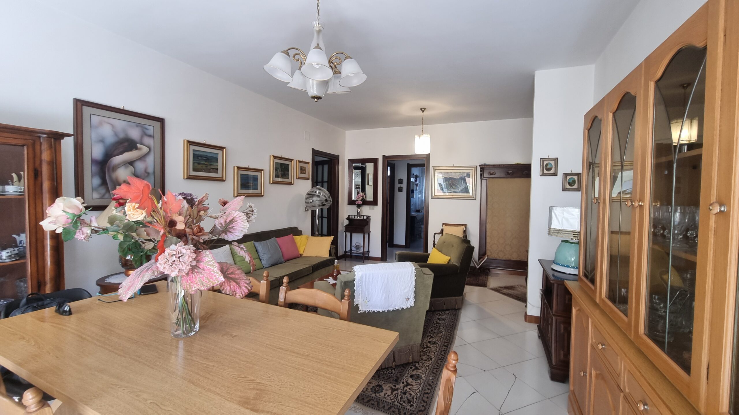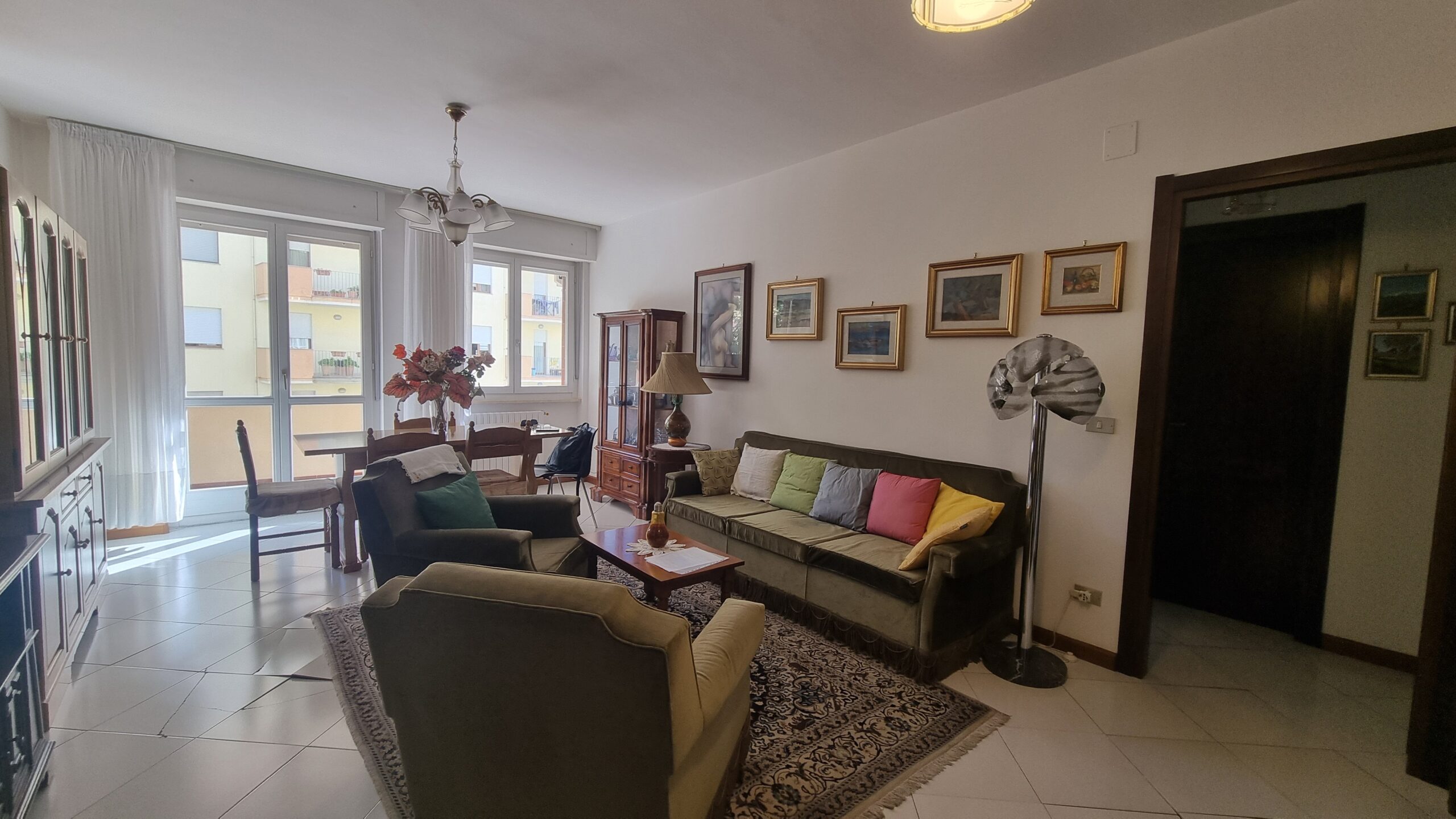 l’appartamento è formato da un ingresso su ampia sala zona giorno con affaccio su terrazzo, camera da letto matrimoniale, due camere singole, cucina abitabile, bagno principale con vasca, doppio servizio lavanderia, ripostiglio, terrazzi e garage al primo sotto piano.