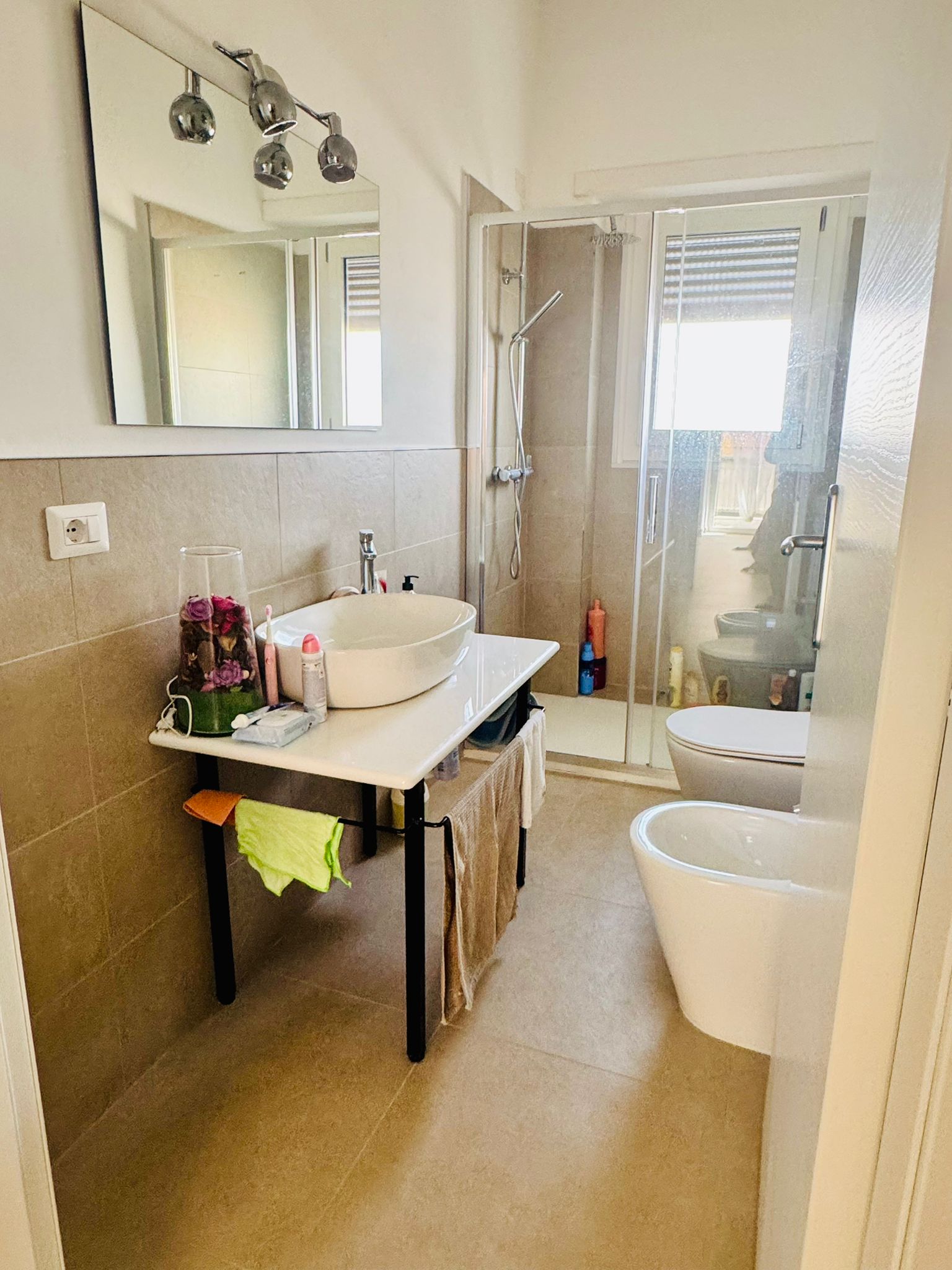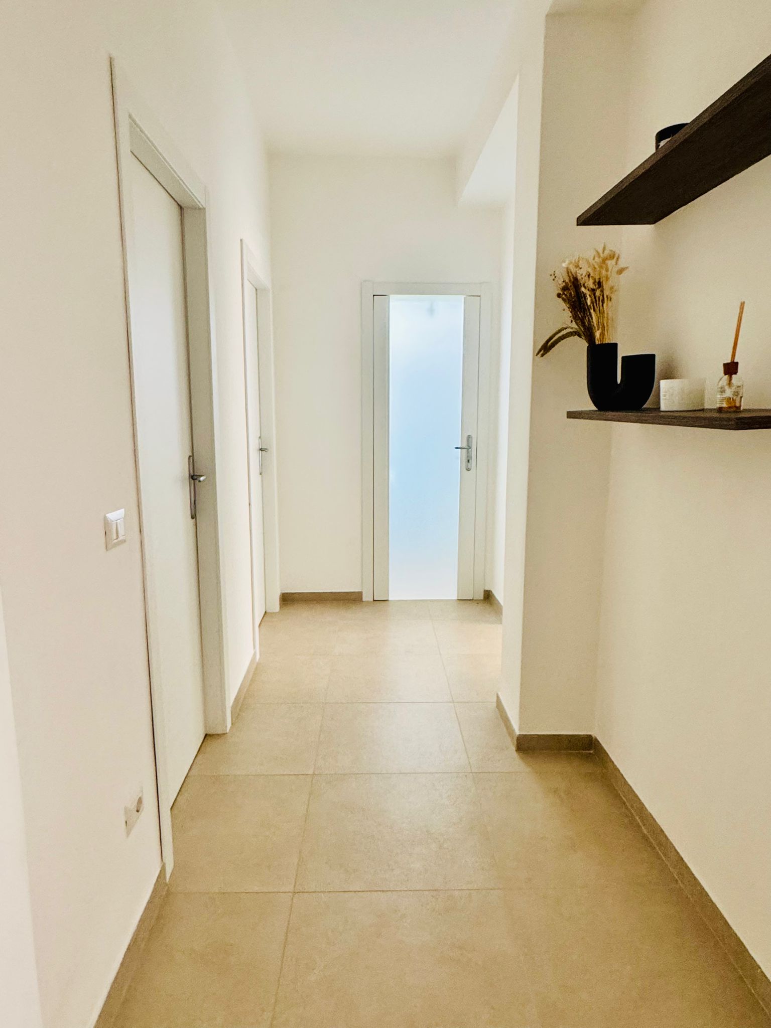 L’immobile, completamente ristrutturato quattro anni fa in ogni sua parte, è composto da sala con cucina a vista, terrazzino perimetrale verandato con ante scorrevoli, tre ampie camere matrimoniali di cui una impreziosita da un ulteriore terrazzo semi-abitabile, due bagni completi e finestrati ed un comodo ripostiglio. Completa la vendita un garage di 14 mq.